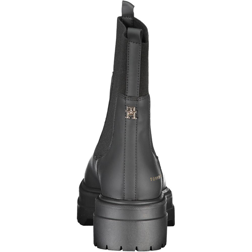 Tommy Hilfiger Black Leather Women Ankle Boot